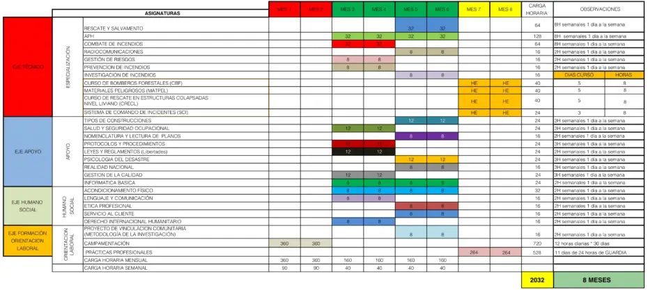 Estas áreas promueven el aprendizaje de manera integral, logrando una organización sistémica que abarca el perfil de egreso del Bombero/a.