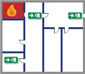 Desde el punto interior de una habitación hasta su salida, la distancia no deberá ser mayor a 15 m.