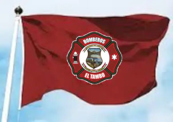 La Bandera de los Cuerpos de Bomberos será un pabellón de fondo rojo, por sus cuatro extremos el tricolor ecuatoriano, y en el centro contendrá el Escudo Oficial de la Institución. En su parte superior constará el nombre del lugar a que pertenece, y en la inferior el Lema “Abnegación y Disciplina”.